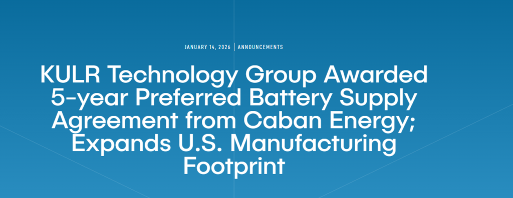 Source: KULR Technology Group press release, “5-Year Preferred Battery Supply Agreement with Caban Energy.”