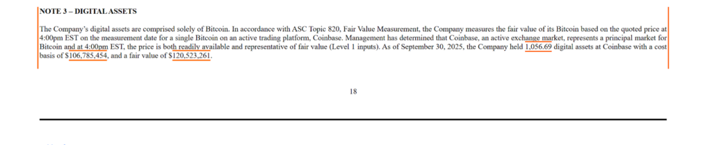 As of September 30, 2025, KULR reported holding 1,056.69 Bitcoin at fair value.